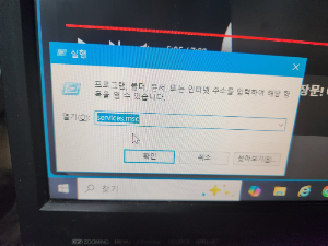 1) 컴퓨터를 끼고 윈도우 + R을 누른상태에서 빈칸에 services.msc를 적고 확인을 누른다