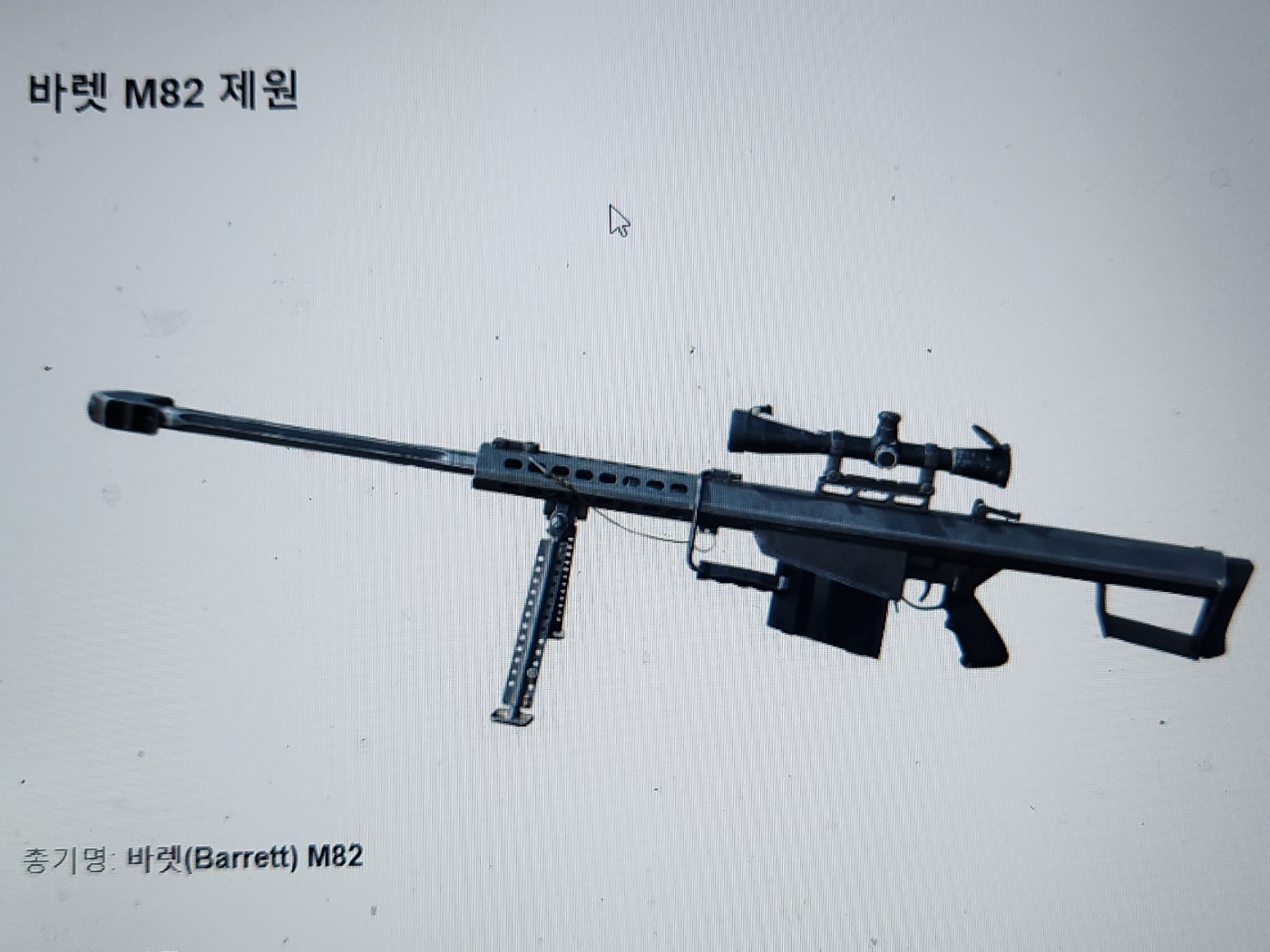- 탄환 : .50 BMG 탄환을 사용해 강력한 파괴력을 발휘하며, 차량이나 장비를 파괴하는 데에도 적합합니다.